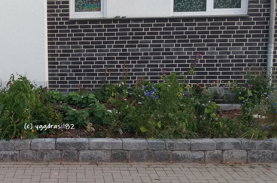 Da wir immer noch mit dem “wundervollen” Ackerboden zu kämpfen haben, den wir geliefert bekamen, als wir den Garten angelegt haben, sprießen diverse Beikräuter stärker als es schön ist. Zwischendurch eine Distel oder hier und da ein bisschen ungewolltes Zeug ist ja ok. Wenn wir aber zwei Wochen in Folge nicht jäten, sind die Blumen unter einem Urwald verschwunden. Wir packen regelmäßig Bio- und Restmülltonne voll (je nachdem um welches Kraut es sich handelt) und haben schon Queckewurzeln entfernt, die sicherlich von hier bis zum Mond reichen würden.