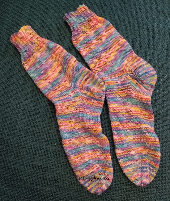 Für die Tausch-Socken habe ich übrigens noch Sockenwolle gekauft, sonst stammt alles an verarbeitetem Garn aus meinem Stash.