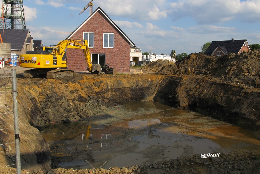 Zusätzlich müssen wir auch noch Angebote von Tiefbauern einholen, damit die unsere Einfahrt glatt ziehen und unseren Garten ein wenig ausschachten. In dem guten Münsterländer Lehmboden können wir leider keinen gescheiten Garten anlegen. Also muss etwas von der Erde weg und mit Sand und Mutterboden aufgefüllt werden. Außerdem soll bis zum Einzug die Einfahrt wenigstens geschottert sein. Soll sich ja kein Umzugshelfer auf die Nase legen.