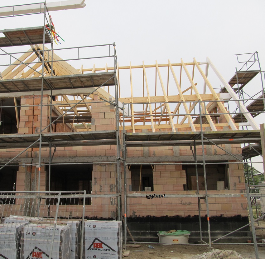 Seit Mitte dieser Woche kam wieder Schwung in die Sache. Der Trockenbauer hat – nach mehrmaligen Terminverschiebungen – die Arbeit aufgenommen. Die Rigipsverkleidungen im Obergeschoss und dem Dachboden sind gut vorangekommen: Bad, Gästezimmer und mein Zimmer sind fertig, der Dachboden ist fast fertig gedämmt und die Verlattung für die Rigipsplatten ist größtenteils fertig. Wir haben mitgeteilt, welche Holztreppe zum Dachboden eingebaut werden soll. Diese soll Montag vermessen und bestellt werden – ich bin gespannt.