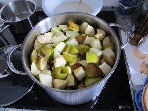 • Die Apfelstücke in den Topf geben bis dieser gut gefüllt ist.