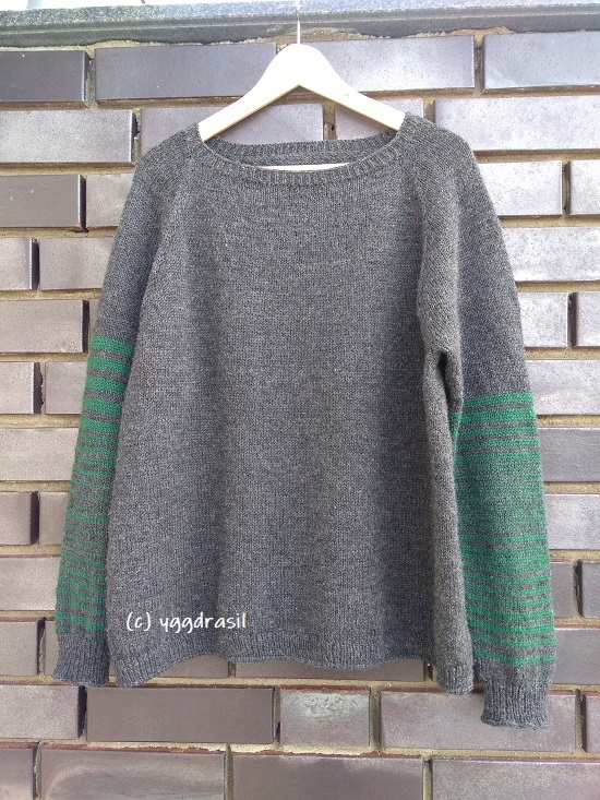 Dabei habe ich neben gleich mehreren Paar Socken auch ein Oberteil fertigbekommen. Leider hatte ich es – trotz Pulloverwetter seit ein paar Tagen – noch nicht an, da mir noch eine passende Hose dazu fehlt. Ich bräuchte eh dringend neue Hosen, aber davon erzähle ich dir weiter unten dann mehr.
