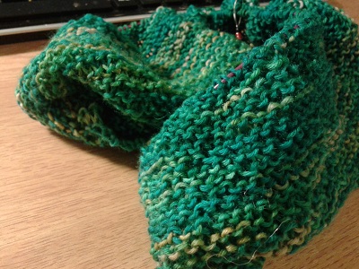 Bisher bin ich ganz glücklich damit, denn es ist eingängig und dabei doch schön. Wenn es fertig wird, wird es ein halbrundes Halstuch sein.