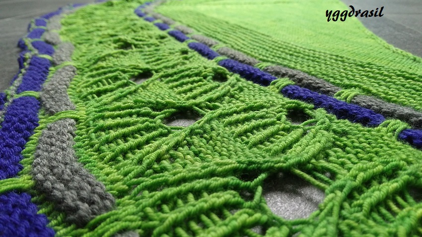 Unfortunately I ran out of the green yarn so there are some parts of the pattern missing. But it turned out large enough after washing and blocking. It’s a nice pattern and I think I’ll knit it again.