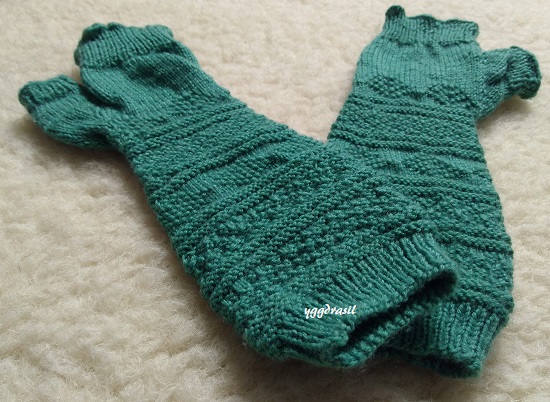 Fazit: Gut zwischendurch zu stricken, allerdings etwas eng geworden. Ich vermute, dass es einfach meinem sehr festem Stricken geschuldet ist. Trotzdem sehr gut tragbar.